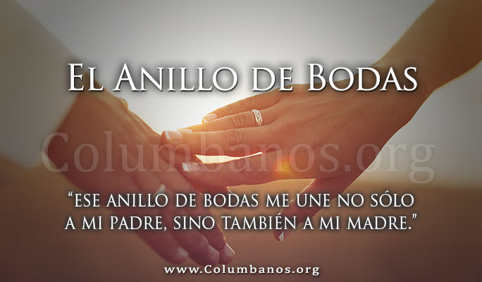 Entonces, para mi gran sorpresa, mi hermano menor me ofreció el anillo de bodas de nuestro padre. Lo acepté con gratitud. Ahora, no había nada más que yo quería de la casa de la familia. Desde entonces sé que dondequiera que vaya en el mundo, ese anillo de bodas me une no sólo a mi padre, sino también a mi madre, mientras que la imagen deshilachada en mi bolsillo me invita continuamente a hacer mi hogar con ellos en el corazón de Jesús.
