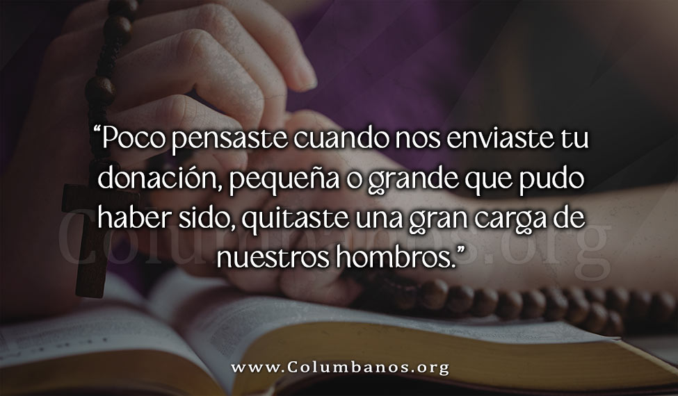 En una reciente reunión de los Obreros Apostólicos, escuché decir que somos misioneros “damos yendo” y que otros “vamos dando”. Para mí, esa es una descripción perfecta de la asociación entre nosotras misioneras y nuestros bienhechores. Tanto el ir como el dar están entrelazados e igualmente necesarios y por ambos damos gracias a Dios.