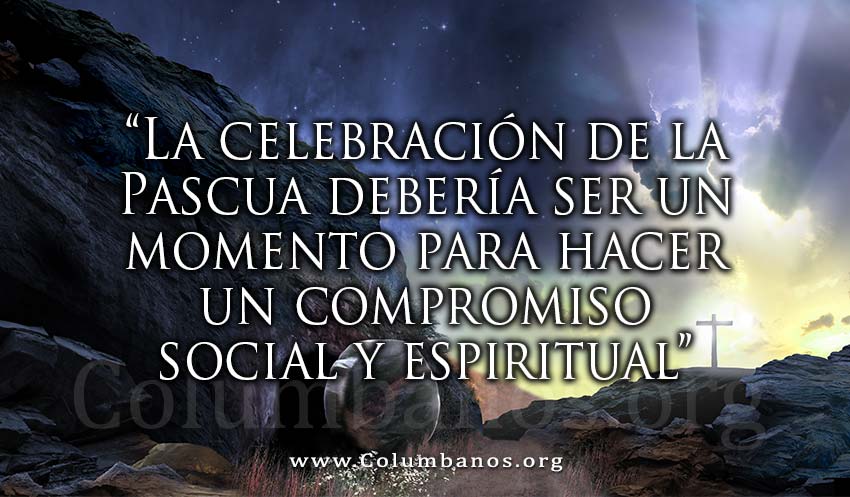 La celebración de la Pascua debería ser un momento para hacer un compromiso social y espiritual en el cual nos comprometemos a trabajar por los valores del Evangelio y luchar por la justicia social por la cual Cristo murió. Este llamado ya fue hecho por Cristo durante la ultima cena, cuando dijo “hagan esto en memoria mía.” Él vive y su espíritu está con quienes creen en Él. Recordemos que Cristo se puso a nuestro servicio y seamos servidores de la humanidad.