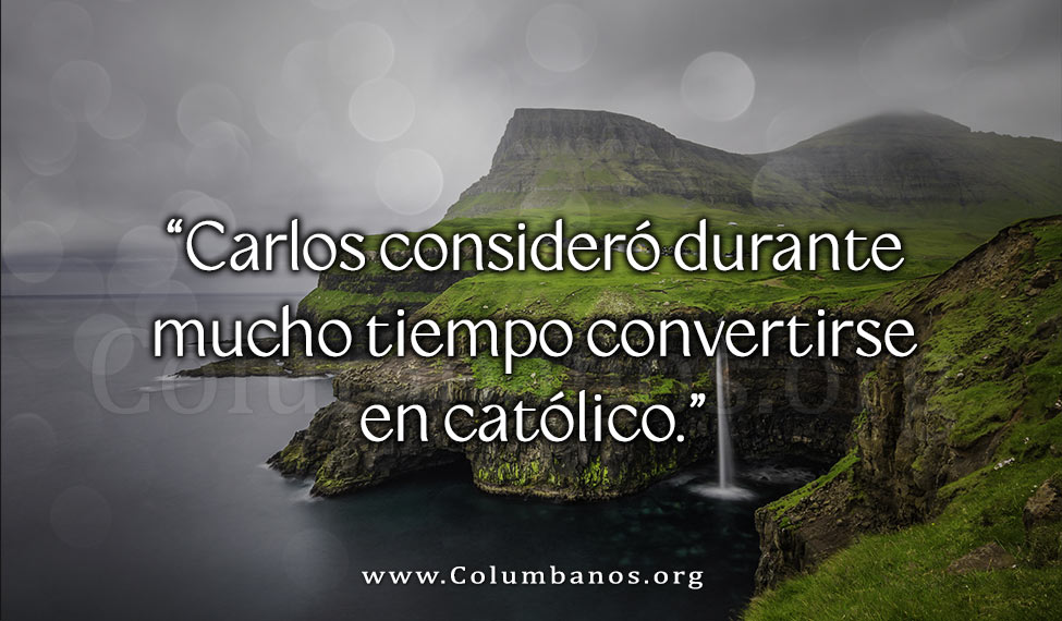 Inspirado en gran parte por el valeroso ejemplo de aquellos católicos que lo habían protegido después de Worcester, Carlos consideró durante mucho tiempo convertirse en católico, pero las consideraciones políticas lo hicieron imposible. Luego, en la mañana del 2 de febrero de 1685, cayó gravemente enfermo. Sabiendo que estaba muriendo, consultó en secreto a su hermano católico James (más tarde Rey James II). Una vez que el clérigo protestante había sido expulsado, subió las escaleras traseras un sacerdote católico, que le dio a Carlos los últimos Sacramentos y le recibió finalmente en la Iglesia Católica.