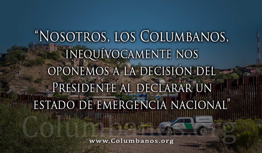 Nosotros, los Columbanos, inequívocamente nos oponemos a la decisión del Presidente al declarar un estado de emergencia nacional para evadir al Congreso y desviar fondos para la construcción de un muro fronterizo. Esta decisión es inmoral e innecesaria. La verdadera emergencia es la deshumanización de los inmigrantes y completamente ignorar a las comunidades fronterizas y el medio ambiente. La construcción de un muro y continuar la militarización no es una solución.