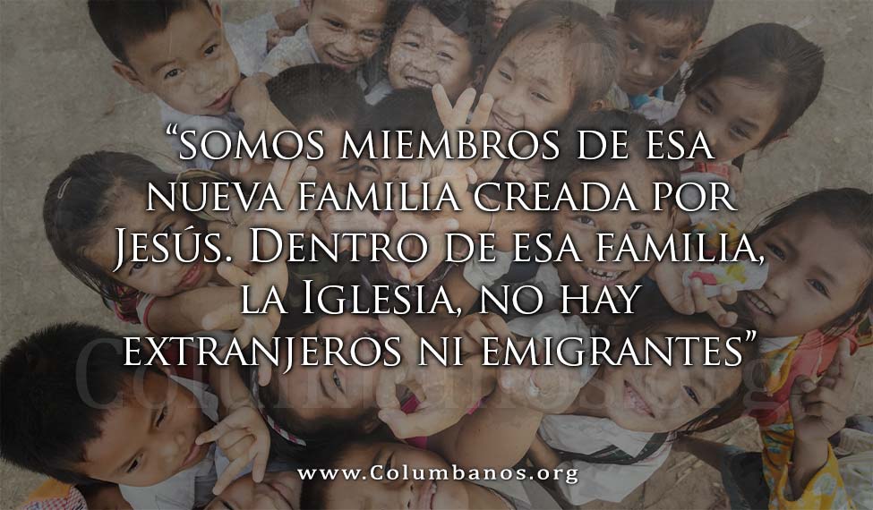Como Cristianos, a donde quiera que vamos por el mundo, somos miembros de esa nueva familia creada por Jesús. Dentro de esa familia, la Iglesia, no hay extranjeros ni emigrantes; en su lugar somos llamados a ser hermanos, hermanas, y madres de unos a otros.